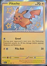 Pikachu is a Shiny Rare Pokémon card from the Paldean Fates Pokémon TCG set, released 2024, illustrated by Yuu Nishida. It sits at card number 131 in the Paldean Fates checklist, classified as a Lightning-type Pokémon with 70 HP and the Basic subtype.