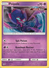 This printing is an uncommon card, pulled roughly 3 per pack (the card is labeled "Uncommon" on the checklist). Poipole has been printed 4 times across different sets - earlier or limited printings often command premiums even when the rarity tier is identical.