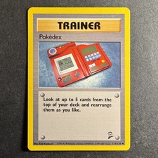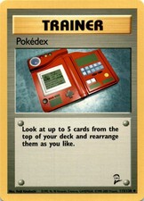 Pokédex is a Uncommon Trainer card from the Base Set 2 Pokémon TCG set, released 1999, illustrated by Keiji Kinebuchi. It sits at card number 115 in the Base Set 2 checklist.