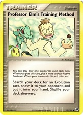 Professor Elm's Training Method is a Uncommon Trainer card from the Dragon Frontiers Pokémon TCG set, released 2003, illustrated by Ken Sugimori. It sits at card number 79 in the Dragon Frontiers checklist and the Supporter subtype.