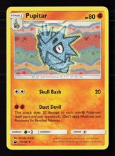 Pupitar is a Uncommon Pokémon card from the Celestial Storm Pokémon TCG set, released 2018, illustrated by Hironobu Yoshida. It sits at card number 75 in the Celestial Storm checklist, classified as a Fighting-type Pokémon with 80 HP and the Stage 1 subtype.