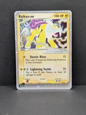 Raikou ex is a Rare Holo EX Pokémon card from the Team Magma vs Team Aqua Pokémon TCG set, released 2003, illustrated by Ryo Ueda. It sits at card number 92 in the Team Magma vs Team Aqua checklist, classified as a Lightning-type Pokémon with 100 HP and the Basic, ex subtypes.