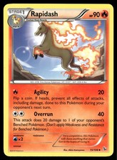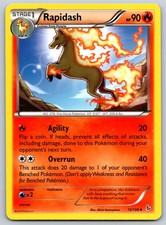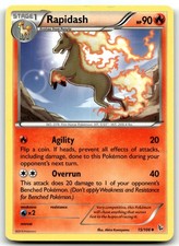 Rapidash is a Uncommon Pokémon card from the Flashfire Pokémon TCG set, released 2014, illustrated by Akira Komayama. It sits at card number 15 in the Flashfire checklist, classified as a Fire-type Pokémon with 90 HP and the Stage 1 subtype.