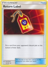 Return Label is a Uncommon Trainer card from the Team Up Pokémon TCG set, released 2018, illustrated by Toyste Beach. It sits at card number 153 in the Team Up checklist and the Item subtype.