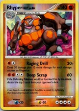 This printing is a standard holofoil rare - roughly 1 per booster pack in modern sets (the card is labeled "Rare Holo" on the checklist). Rhyperior has been printed 9 times across different sets - earlier or limited printings often command premiums even when the rarity tier is identical.