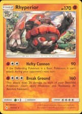 This printing is a standard rare, pulled roughly 1 per pack (the card is labeled "Rare" on the checklist). Rhyperior has been printed 9 times across different sets - earlier or limited printings often command premiums even when the rarity tier is identical.