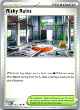 Risky Ruins is a Uncommon Trainer card from the Mega Evolution Pokémon TCG set. It sits at card number 127 in the Mega Evolution checklist and the Stadium subtype.