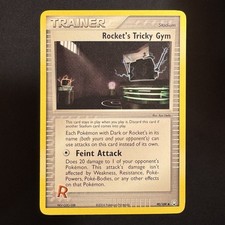 Rocket's Tricky Gym is a Uncommon Trainer card from the Team Rocket Returns Pokémon TCG set, released 2003, illustrated by Ryo Ueda. It sits at card number 90 in the Team Rocket Returns checklist and the Stadium subtype.
