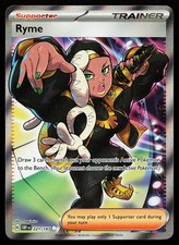 Ryme is a Ultra Rare Trainer card from the Obsidian Flames Pokémon TCG set, released 2024, illustrated by nagimiso. It sits at card number 221 in the Obsidian Flames checklist and the Supporter subtype.