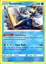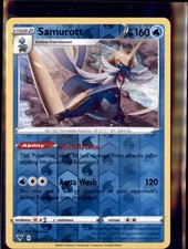 This printing is a standard rare, pulled roughly 1 per pack (the card is labeled "Rare" on the checklist). Samurott has been printed 9 times across different sets - earlier or limited printings often command premiums even when the rarity tier is identical.