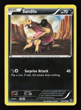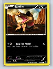 Sandile is a Common Pokémon card from the Flashfire Pokémon TCG set, released 2014, illustrated by Masakazu Fukuda. It sits at card number 56 in the Flashfire checklist, classified as a Darkness-type Pokémon with 70 HP and the Basic subtype.
