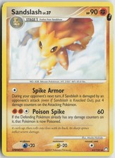 Sandslash is a Uncommon Pokémon card from the Mysterious Treasures Pokémon TCG set, released 2007, illustrated by Atsuko Nishida. It sits at card number 61 in the Mysterious Treasures checklist, classified as a Fighting-type Pokémon with 90 HP and the Stage 1 subtype.