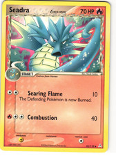 Seadra δ is a Uncommon Pokémon card from the Holon Phantoms Pokémon TCG set, released 2003, illustrated by Kouki Saitou. It sits at card number 52 in the Holon Phantoms checklist, classified as a Fire-type Pokémon with 70 HP and the Stage 1 subtype.