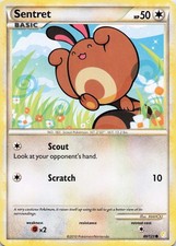 This printing is a common card, the base-tier pull (the card is labeled "Common" on the checklist). Sentret has been printed 9 times across different sets - earlier or limited printings often command premiums even when the rarity tier is identical.