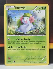 This printing is a standard rare, pulled roughly 1 per pack (the card is labeled "Rare" on the checklist). Shaymin has been printed 9 times across different sets - earlier or limited printings often command premiums even when the rarity tier is identical.