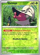 This printing is a common card, the base-tier pull (the card is labeled "Common" on the checklist). Shelmet has been printed 9 times across different sets - earlier or limited printings often command premiums even when the rarity tier is identical.
