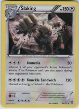 This printing is a standard holofoil rare - roughly 1 per booster pack in modern sets (the card is labeled "Rare Holo" on the checklist). Slaking has been printed 9 times across different sets - earlier or limited printings often command premiums even when the rarity tier is identical.
