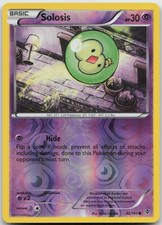 Solosis is a Common Pokémon card from the Plasma Blast Pokémon TCG set, released 2011, illustrated by Midori Harada. It sits at card number 42 in the Plasma Blast checklist, classified as a Psychic-type Pokémon with 30 HP and the Basic subtype.