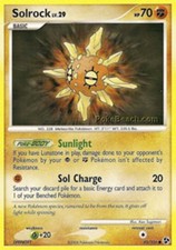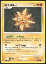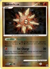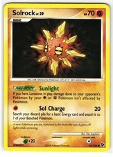 This printing is a common card, the base-tier pull (the card is labeled "Common" on the checklist). Solrock has been printed 9 times across different sets - earlier or limited printings often command premiums even when the rarity tier is identical.