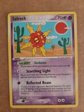 Solrock is a Uncommon Pokémon card from the Deoxys Pokémon TCG set, released 2003, illustrated by Kyoko Umemoto. It sits at card number 47 in the Deoxys checklist, classified as a Psychic-type Pokémon with 70 HP and the Basic subtype.