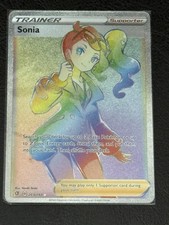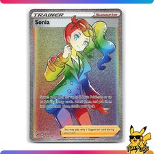 This printing is a rainbow rare variant, one of the shortest-printed tiers in modern sets (the card is labeled "Rare Rainbow" on the checklist). Sonia has been printed 4 times across different sets - earlier or limited printings often command premiums even when the rarity tier is identical.