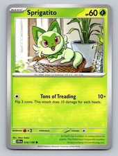 This printing is a common card, the base-tier pull (the card is labeled "Common" on the checklist). Sprigatito has been printed 7 times across different sets - earlier or limited printings often command premiums even when the rarity tier is identical.