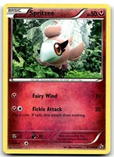 Spritzee is a Common Pokémon card from the Flashfire Pokémon TCG set, released 2014, illustrated by 5ban Graphics. It sits at card number 67 in the Flashfire checklist, classified as a Fairy-type Pokémon with 50 HP and the Basic subtype.
