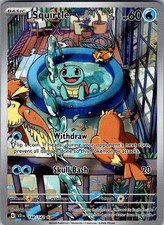 This printing is a high-value alt-art tier introduced in Scarlet & Violet, pulled roughly 1 in 60-90 packs depending on set (the card is labeled "Illustration Rare" on the checklist). Squirtle has been printed 9 times across different sets - earlier or limited printings often command premiums even when the rarity tier is identical.