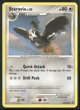This printing is an uncommon card, pulled roughly 3 per pack (the card is labeled "Uncommon" on the checklist). Staravia has been printed 9 times across different sets - earlier or limited printings often command premiums even when the rarity tier is identical.