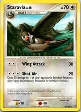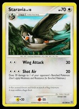 Staravia is a Uncommon Pokémon card from the Stormfront Pokémon TCG set, released 2007, illustrated by Midori Harada. It sits at card number 52 in the Stormfront checklist, classified as a Colorless-type Pokémon with 70 HP and the Stage 1 subtype.