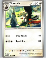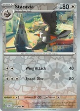 Staravia has been printed 9 times across different sets. The variant you're looking at (#149 in Scarlet & Violet) is one of them - see every other printing further down to compare art, rarity, and current market price across all versions.