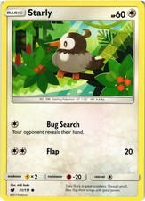 Starly is a Common Pokémon card from the Crimson Invasion Pokémon TCG set, released 2017, illustrated by miki kudo. It sits at card number 81 in the Crimson Invasion checklist, classified as a Colorless-type Pokémon with 60 HP and the Basic subtype.