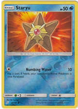 This printing is a common card, the base-tier pull (the card is labeled "Common" on the checklist). Staryu has been printed 9 times across different sets - earlier or limited printings often command premiums even when the rarity tier is identical.