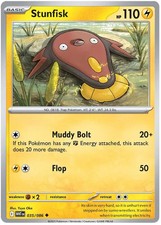 This printing is an uncommon card, pulled roughly 3 per pack (the card is labeled "Uncommon" on the checklist). Stunfisk has been printed 9 times across different sets - earlier or limited printings often command premiums even when the rarity tier is identical.