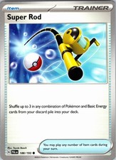 Super Rod has been printed 6 times across different sets. The variant you're looking at (#188 in Paldea Evolved) is one of them - see every other printing further down to compare art, rarity, and current market price across all versions.