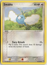 Swablu is a Common Pokémon card from the Power Keepers Pokémon TCG set, released 2003, illustrated by Ken Sugimori. It sits at card number 66 in the Power Keepers checklist, classified as a Colorless-type Pokémon with 40 HP and the Basic subtype.