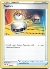 Switch is a Uncommon Trainer card from the Sword & Shield Pokémon TCG set, released 2020, illustrated by Studio Bora Inc.. It sits at card number 183 in the Sword & Shield checklist and the Item subtype.