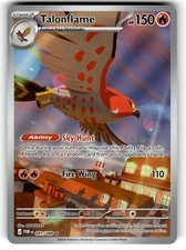 This printing is a high-value alt-art tier introduced in Scarlet & Violet, pulled roughly 1 in 60-90 packs depending on set (the card is labeled "Illustration Rare" on the checklist). Talonflame has been printed 9 times across different sets - earlier or limited printings often command premiums even when the rarity tier is identical.