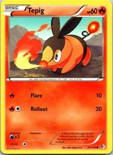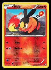 This printing is a common card, the base-tier pull (the card is labeled "Common" on the checklist). Tepig has been printed 9 times across different sets - earlier or limited printings often command premiums even when the rarity tier is identical.