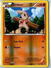 This printing is a common card, the base-tier pull (the card is labeled "Common" on the checklist). Timburr has been printed 9 times across different sets - earlier or limited printings often command premiums even when the rarity tier is identical.