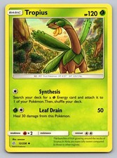 Tropius has been printed 9 times across different sets. The variant you're looking at (#12 in Cosmic Eclipse) is one of them - see every other printing further down to compare art, rarity, and current market price across all versions.