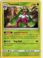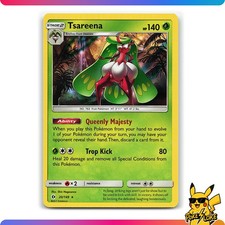 This printing is a standard holofoil rare - roughly 1 per booster pack in modern sets (the card is labeled "Rare Holo" on the checklist). Tsareena has been printed 6 times across different sets - earlier or limited printings often command premiums even when the rarity tier is identical.