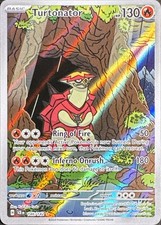 This printing is a high-value alt-art tier introduced in Scarlet & Violet, pulled roughly 1 in 60-90 packs depending on set (the card is labeled "Illustration Rare" on the checklist). Turtonator has been printed 9 times across different sets - earlier or limited printings often command premiums even when the rarity tier is identical.