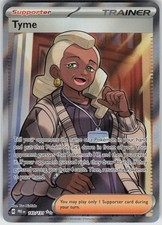 Tyme is a Ultra Rare Trainer card from the Prismatic Evolutions Pokémon TCG set, released 2025. It sits at card number 143 in the Prismatic Evolutions checklist and the Supporter subtype.