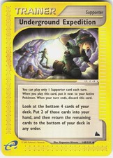 Underground Expedition is a Uncommon Trainer card from the Skyridge Pokémon TCG set, illustrated by Kagemaru Himeno. It sits at card number 140 in the Skyridge checklist and the Supporter subtype.