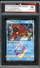 Volcanion ◇ is a Rare Prism Star Pokémon card from the Forbidden Light Pokémon TCG set, released 2018, illustrated by Naoki Saito. It sits at card number 31 in the Forbidden Light checklist, classified as a Water-type Pokémon with 160 HP and the Basic, Prism Star subtypes.
