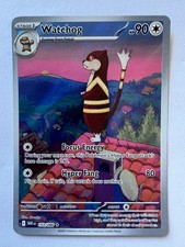This printing is a high-value alt-art tier introduced in Scarlet & Violet, pulled roughly 1 in 60-90 packs depending on set (the card is labeled "Illustration Rare" on the checklist). Watchog has been printed 9 times across different sets - earlier or limited printings often command premiums even when the rarity tier is identical.