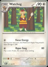 Watchog is a Uncommon Pokémon card from the White Flare Pokémon TCG set, illustrated by Ounishi. It sits at card number 73 in the White Flare checklist, classified as a Colorless-type Pokémon with 90 HP and the Stage 1 subtype.