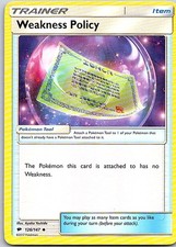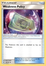 Weakness Policy is a Uncommon Trainer card from the Burning Shadows Pokémon TCG set, released 2017, illustrated by Ayaka Yoshida. It sits at card number 126 in the Burning Shadows checklist and the Pokémon Tool subtype.