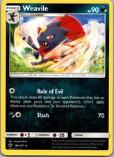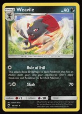 This printing is a standard rare, pulled roughly 1 per pack (the card is labeled "Rare" on the checklist). Weavile has been printed 9 times across different sets - earlier or limited printings often command premiums even when the rarity tier is identical.